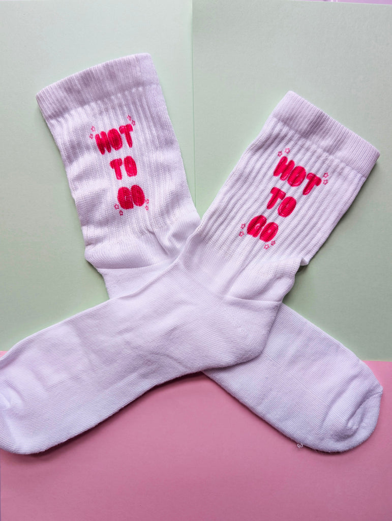 Slide into ultimate comfort and sass with these super soft white socks featuring the phrase "Hot to Go" in bold pink font. Inspired by Chappell Roanās fearless energy, these socks are perfect for lounging, dancing, or making a statement with every step. Whether you're pairing them with sneakers, boots, or wearing them cozy at home, theyāll keep your feet looking cute and feeling amazing.